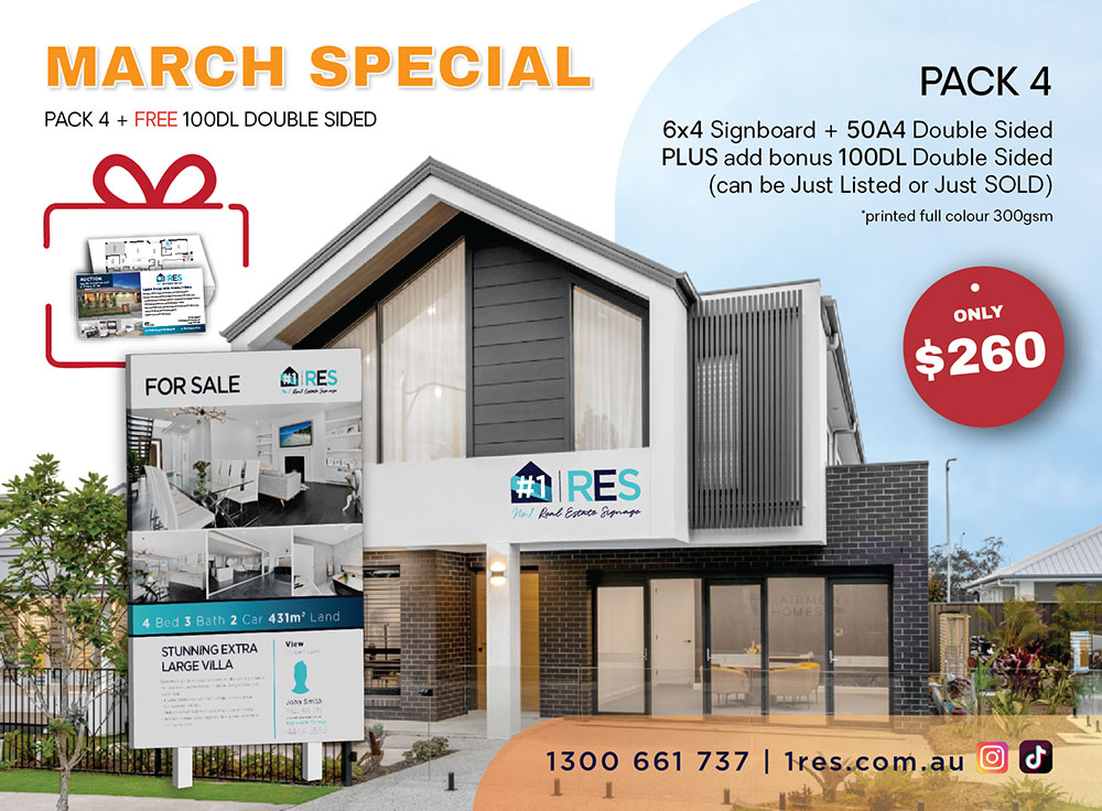 6. Hire period of Small Flat, Small Slim, Tall Slim Signboards are max. of 4months, if no removal date has been set in this timeframe, the sign will be automatically removed, if agent requires sign longer a monthly hire fee will be charged at $45.00 per month will be charged.